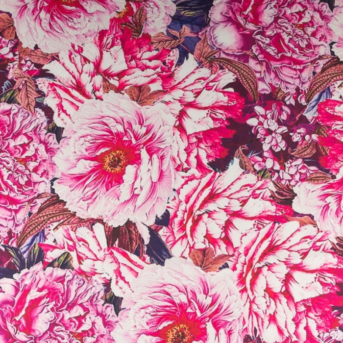 Látka viskóza twill ružová hladká pivónie vzor 0,5m